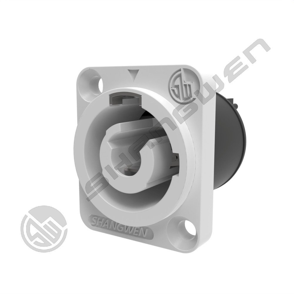Uso en interiores Powercon Chasis 3 Conductor 20A 250V Apagado de energía 3/16 "Terminales de pestaña plana Color blanco para gabinete de pantalla LED